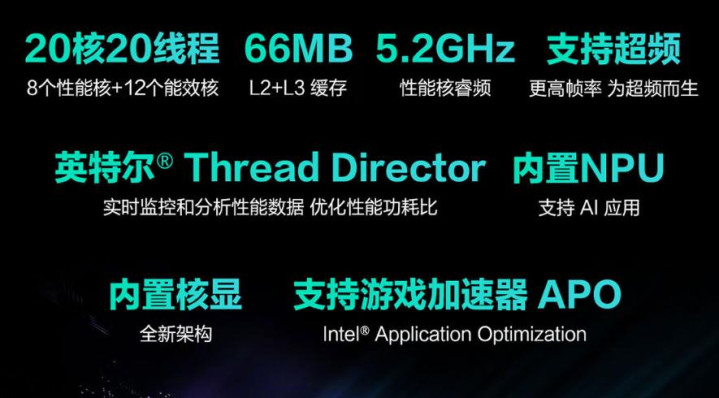 其次,内置的Thread Director能够实时监测系统负载,并智能分配任务,确保关键应用在需要时优先获得算力支持。此外,全新的独立NPU单元可高效处理视频会议中的背景虚化、语音降噪等任务,显著减轻CPU/GPU负担,从而进一步提升整体能效表现
